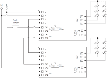 | PUSH dimming synchronization | Parallel: 15 units Max. Series: 25 units Max. | |||||||